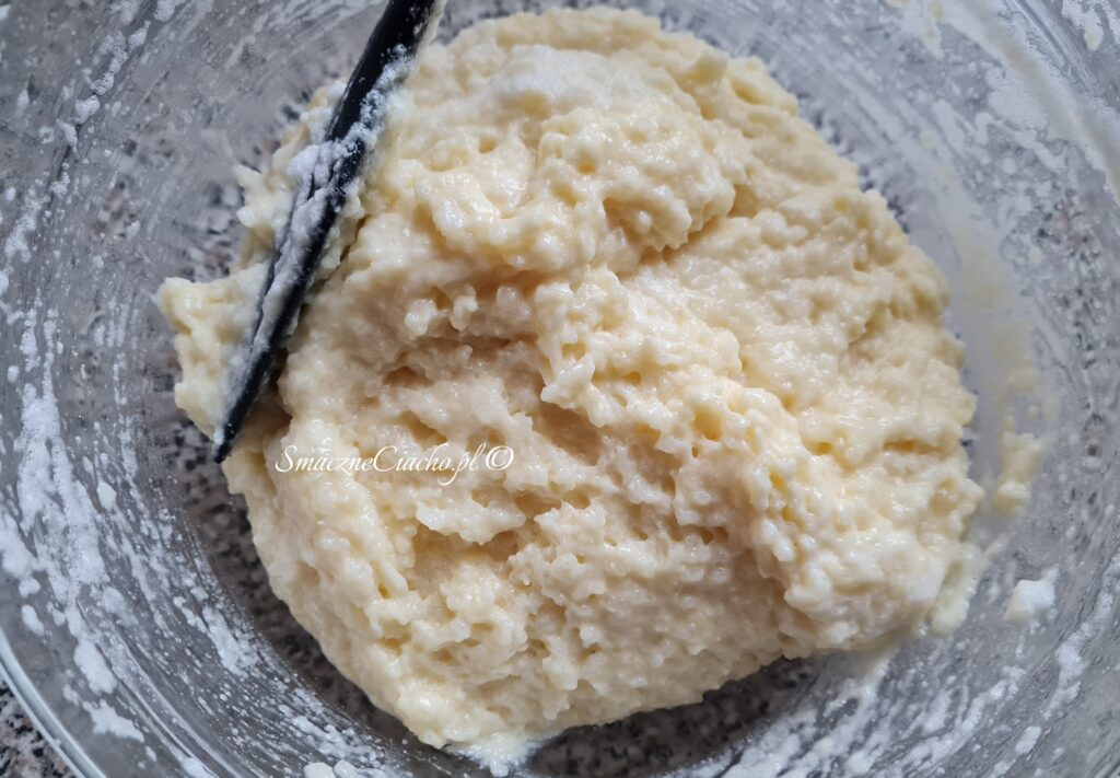 8. Gotowe ciasto przełóż do formy, wyrównaj i wstaw do nagrzanego piekarnika. Piecz ok. 45 minut.