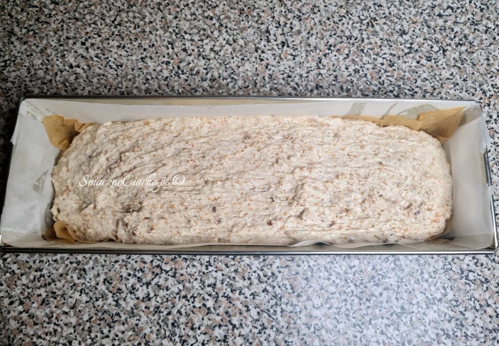 6. Wymieszaj całość łyżką i przełóż do przygotowanej keksówki lub naczynia żaroodpornego.