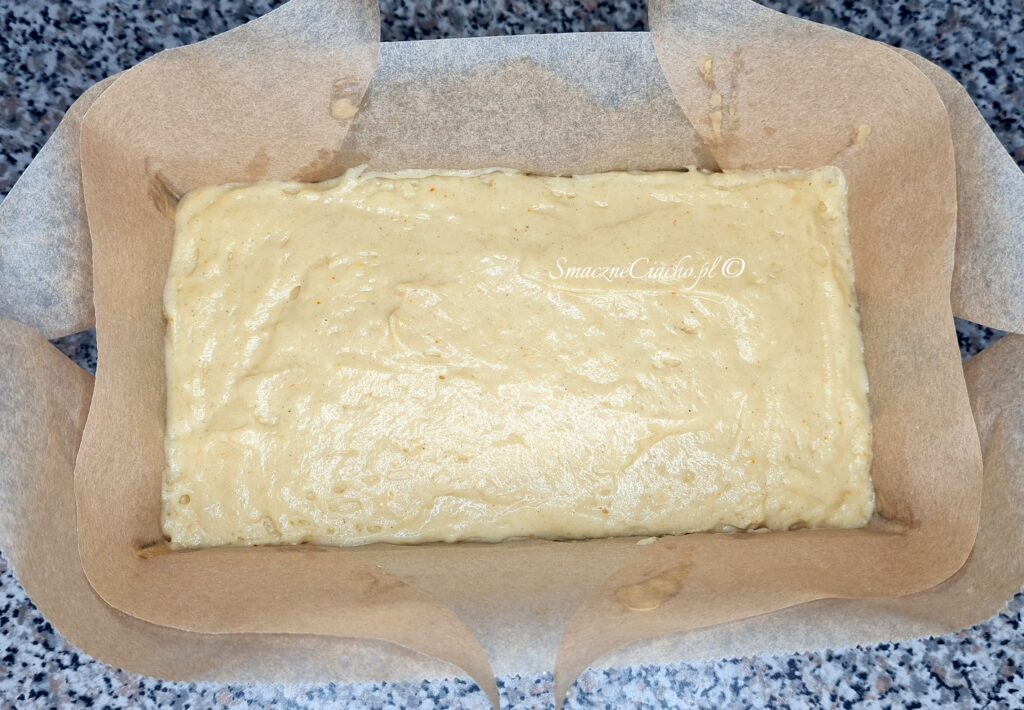 3. Formę wysmaruj tłuszczem i wyłóż papierem do pieczenia. Piekarnik ustaw na 180°C grzałka dolna. (Jeżeli użyjesz keksówki 20x10cm, pozostaw margines papieru minimum 2cm powyżej foremki).