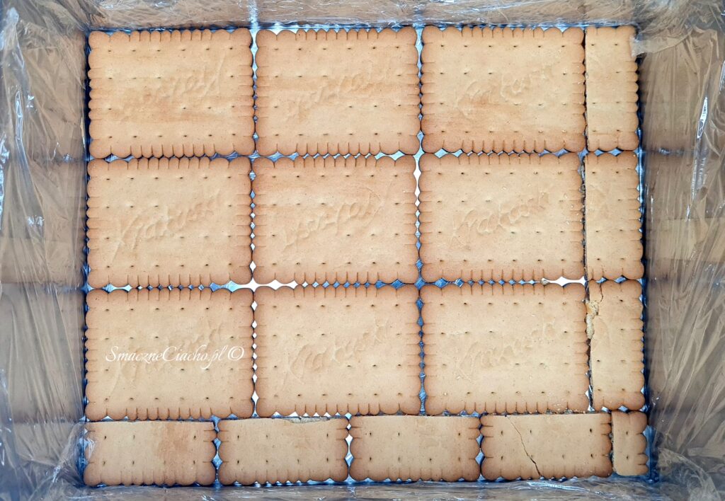 2. Na spodzie ułóż warstwę herbatników.