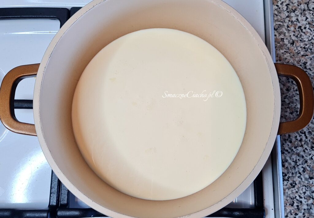 1. Śmietankę wlej do garnka i podgrzewaj na średnim ogniu.