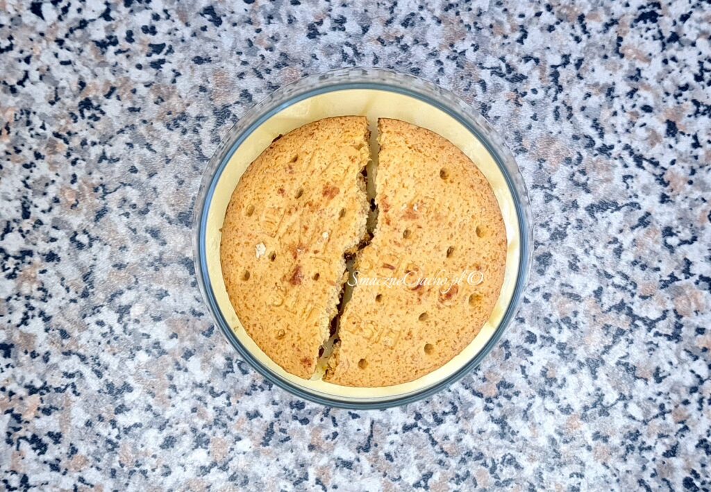 1. Na wierzch budyniu ułóż po jednym lub po dwa ciastka, najlepiej czekoladą do dołu (Jeżeli ciastko ma większą średnicę niż góra szklanki, przełam ciasto na pół).