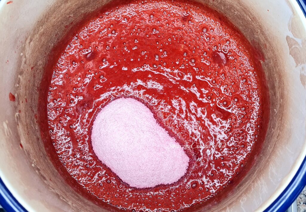 3. Ponownie ustaw garnek z puree truskawkowym na ogniu i zagotuj.