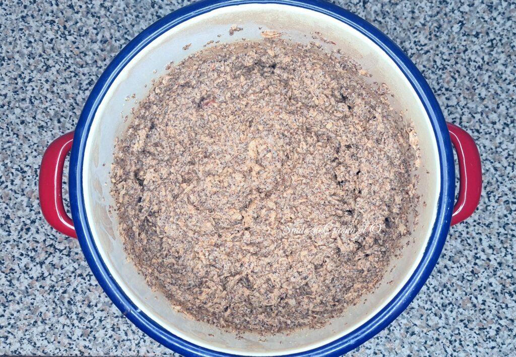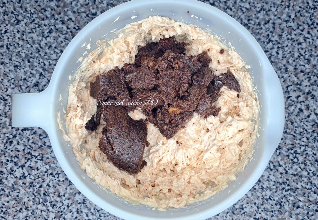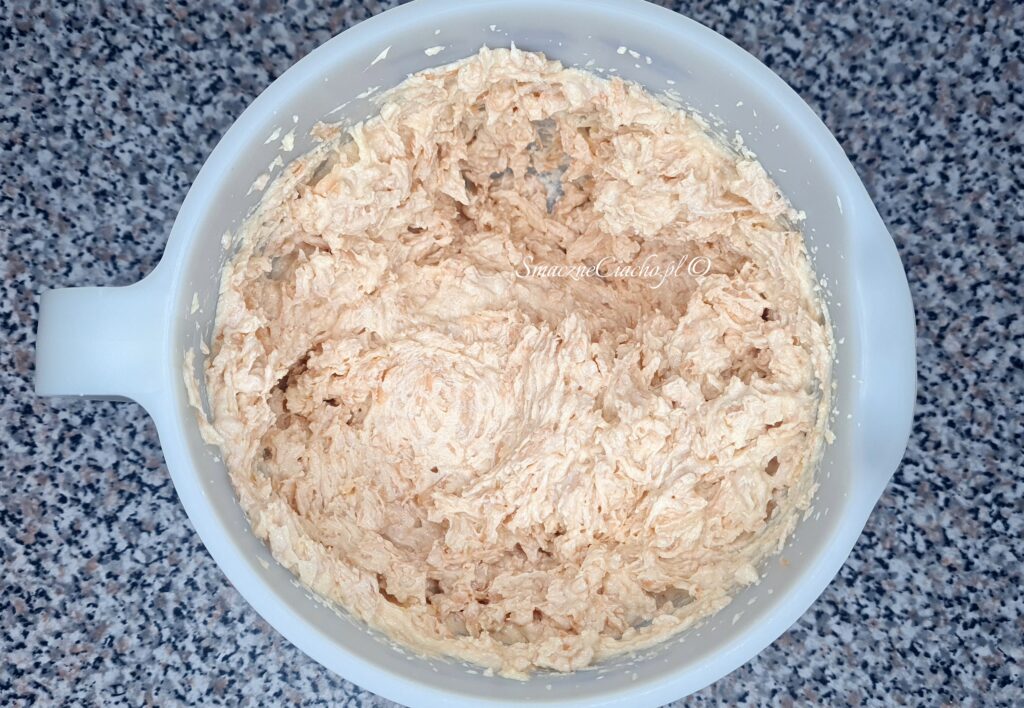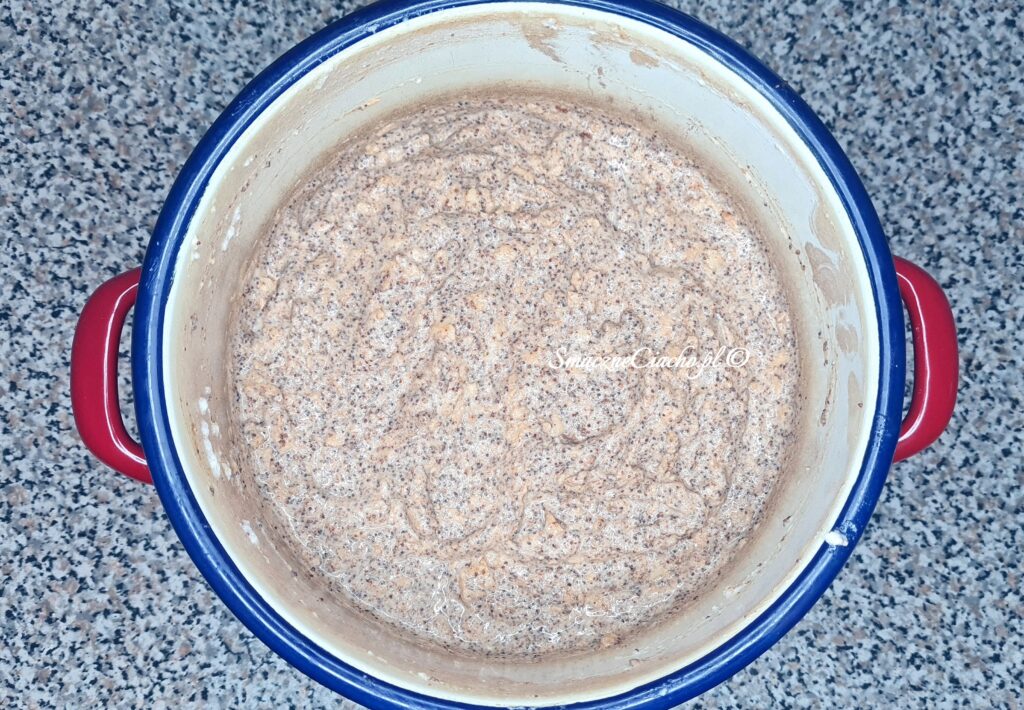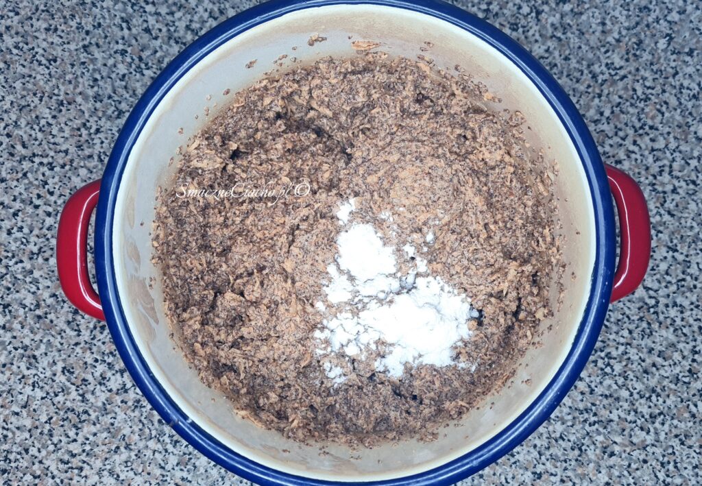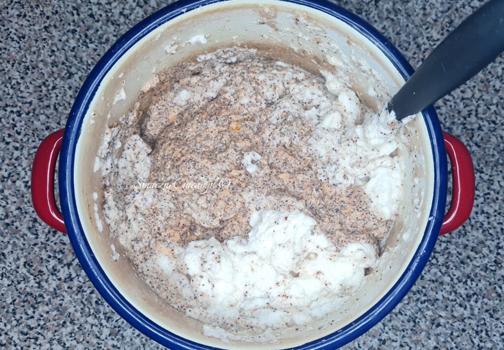 7. Do masy z jabłkami dodaj w kilku partiach masę makową i każdą wymieszaj mikserem.