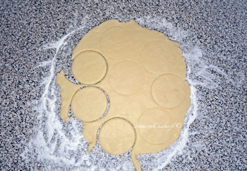 3. Ciasto rozwałkuj na grubość ok. 4mm. Wykrój foremką, np. do tartaletek, spody mazurków.