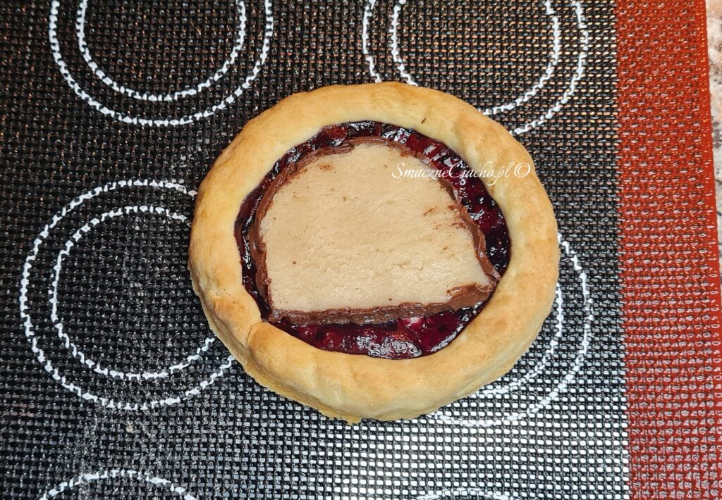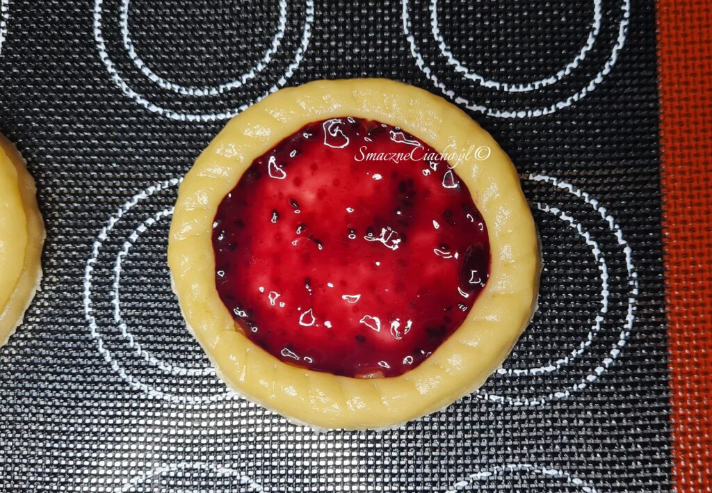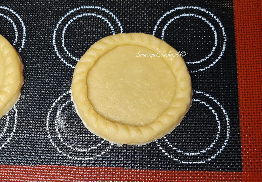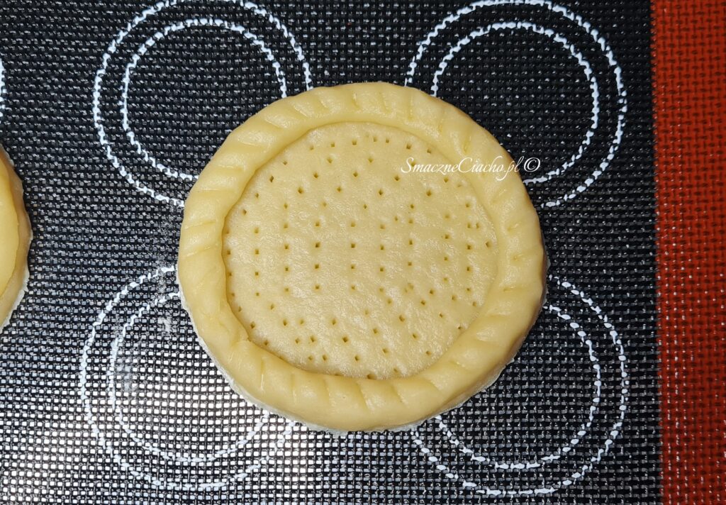 5. Przygotowane jednoporcyjne foremki z ciasta przełóż na blachę wyłożoną papierem do pieczenia lub matą perforowaną i ponakłuwaj widelcem.