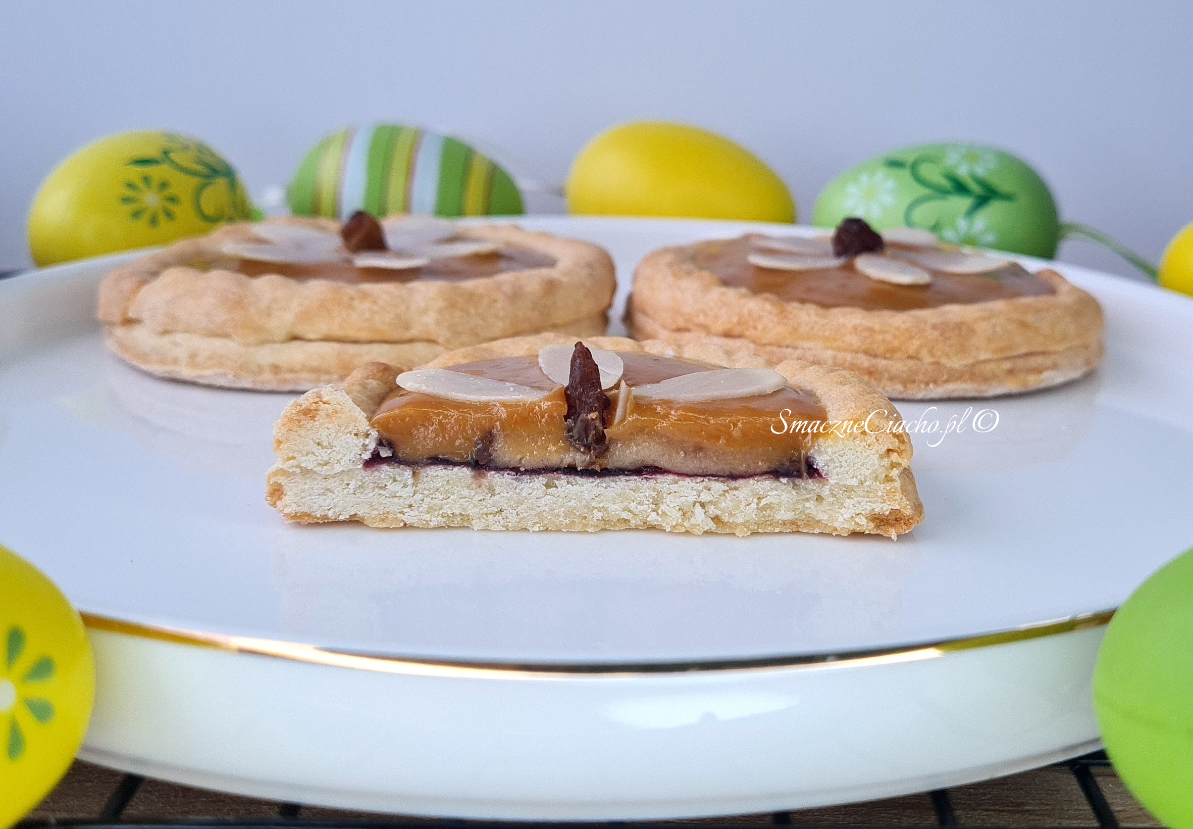 Zapraszam do przepisu poniżej na moje porcyjne mazurki kajmakowe z marcepanem i konfiturą.