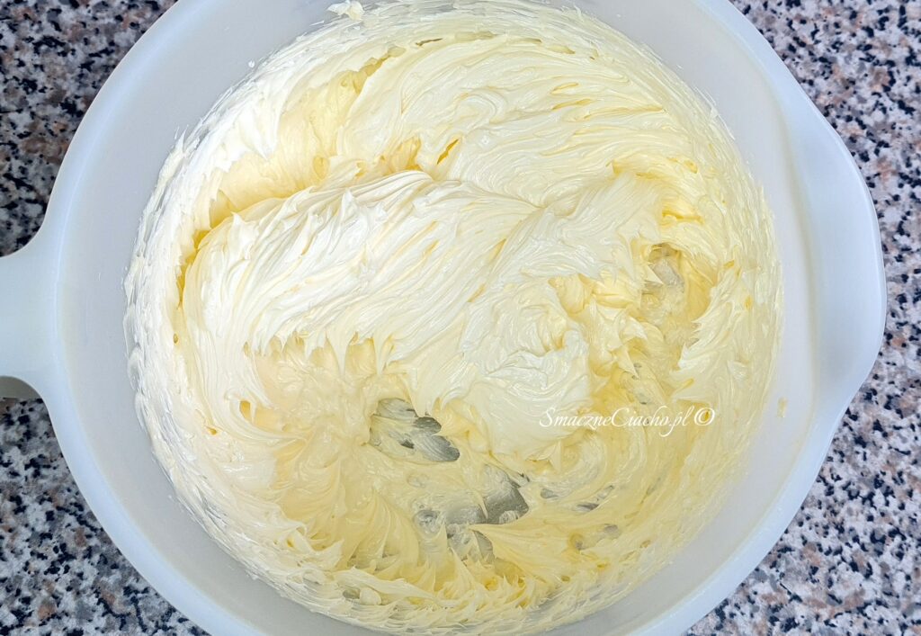 3. 400g miękkiego masła wrzuć do drugiej miski lub garnka i ucieraj mikserem na średnich obrotach aż zrobi się jasne i gładkie (około 5 minut).