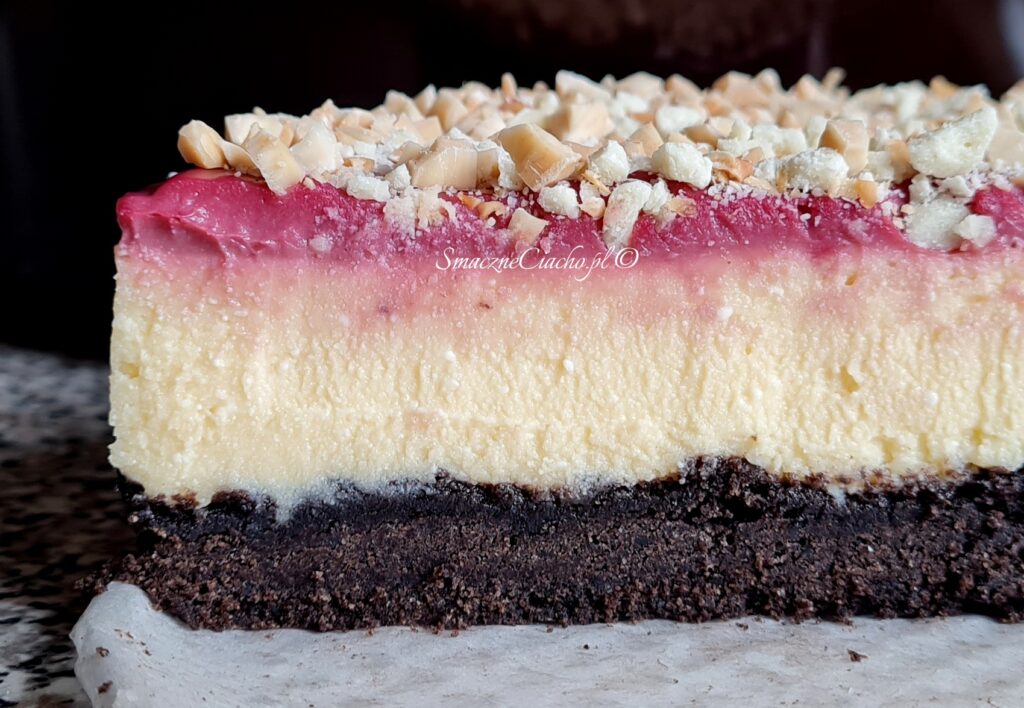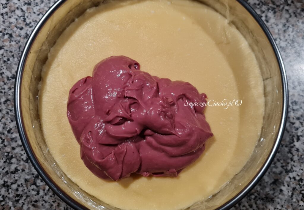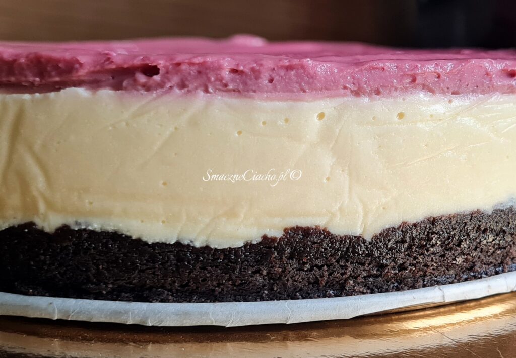 Waniliowy sernik gotowany z kremem malinowym