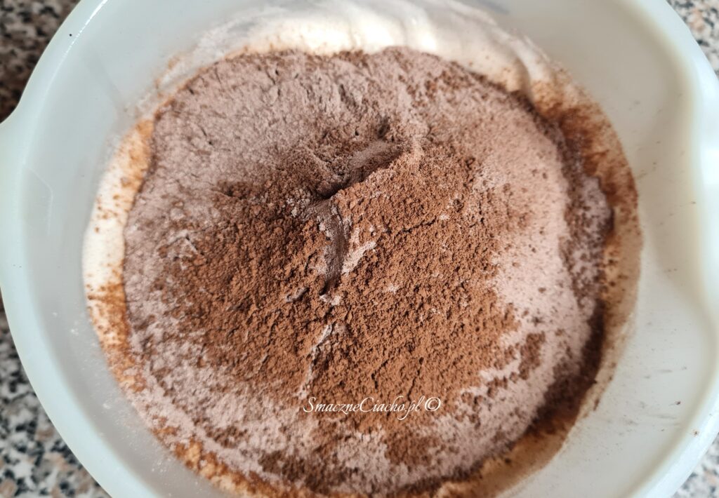 3. Mąkę zmieszaj z kakao i proszkiem do pieczenia.